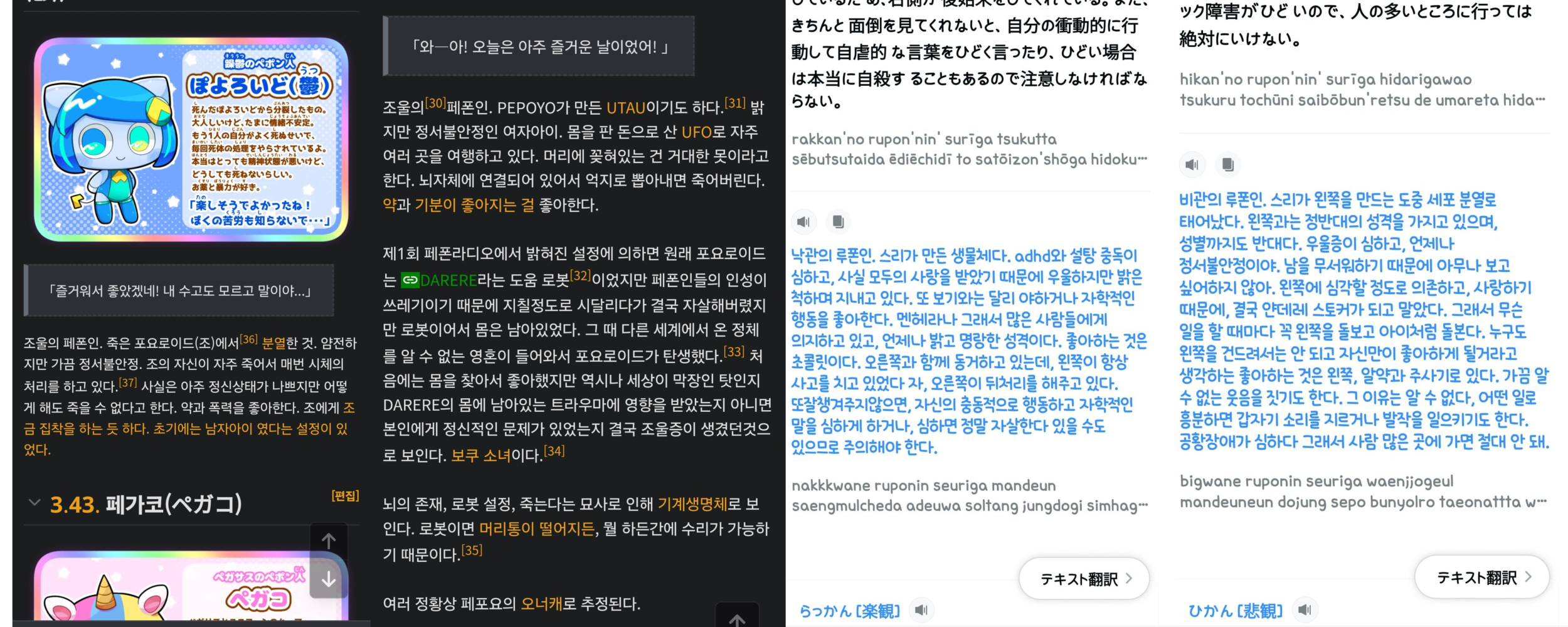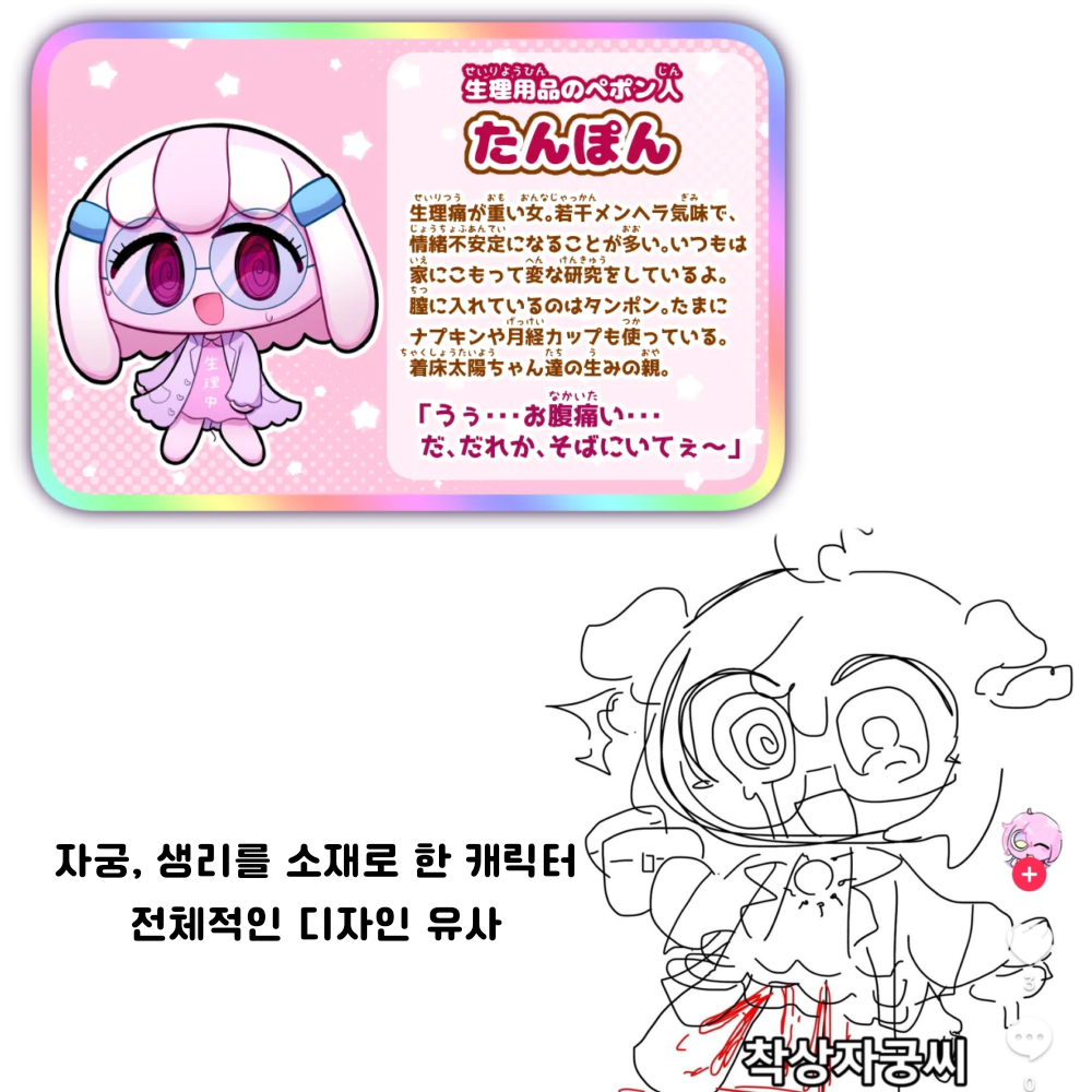 또한, 자캐 커뮤니티 판에서 활동하면서도 계속해서 페포요님의 캐릭터, 설정, 곡의 가사등을 파쿠리한것을 알아내게 되었습니다. 증거는 다음과 같습니다.